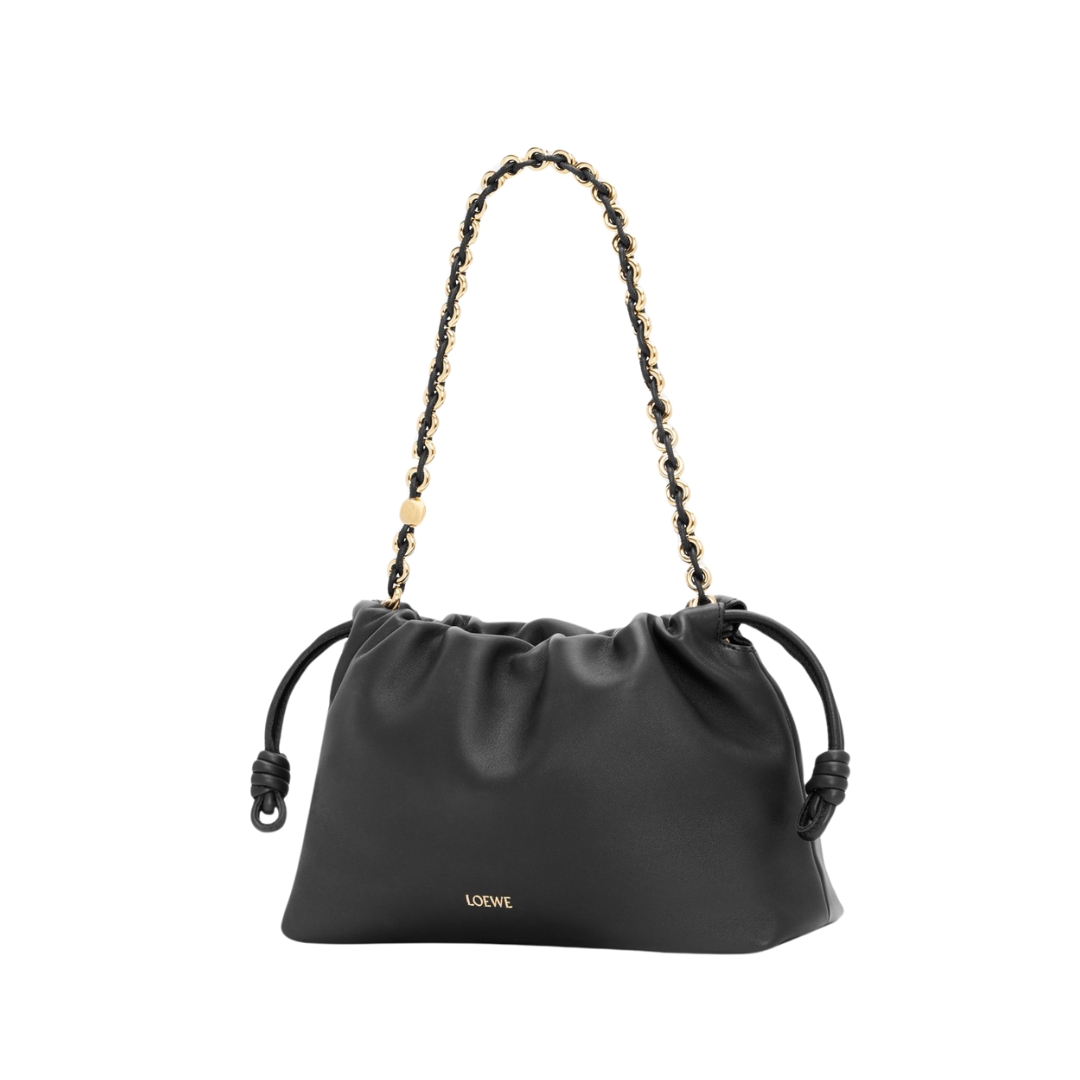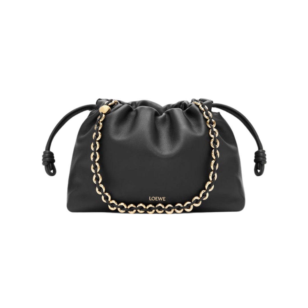 Borsa Loewe Flamenco Mini in nappa nera con catena 20 cm
