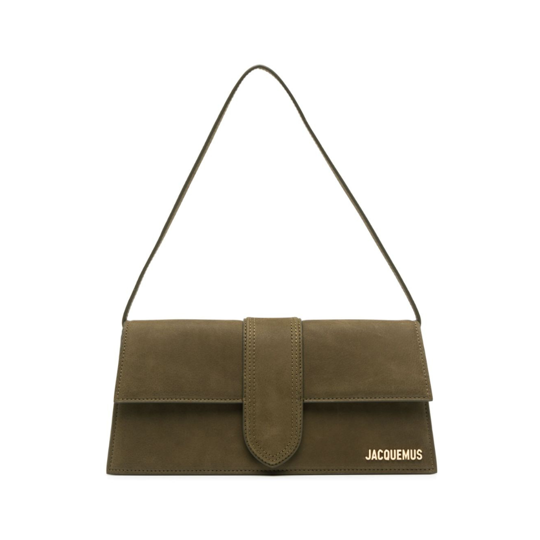Borsa Jacquemus Le Bambino Long in suede verde militare 26 cm