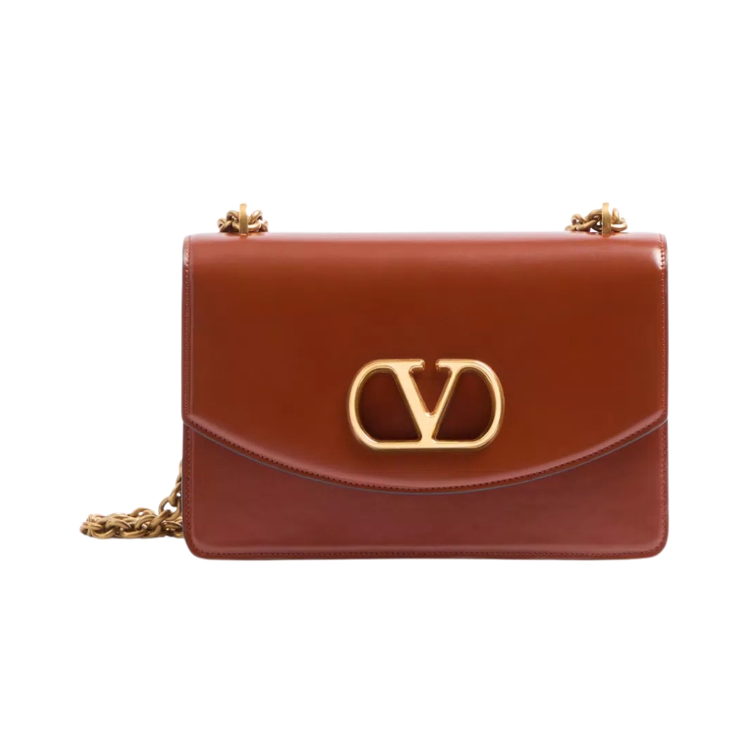 Borsa Valentino Vain in pelle di vitello lucida cuoio 24 cm