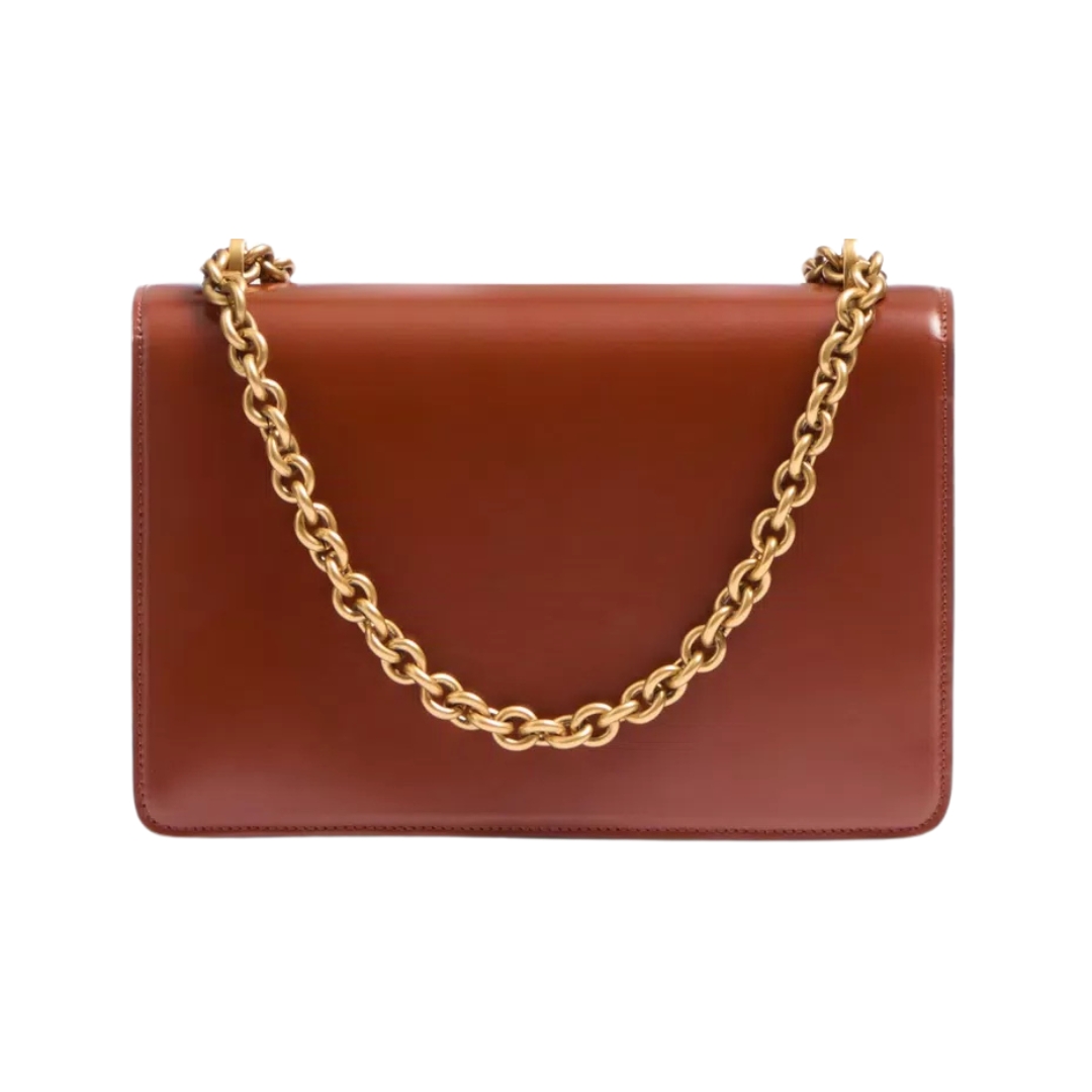 Dimensioni:● Larghezza: 24 cm● Altezza: 17 cm● Profondità: 7 cm Dettagli:● Materiale: Pelle di vitello lucida● Colore: Cuoio● Chiusura: Patta