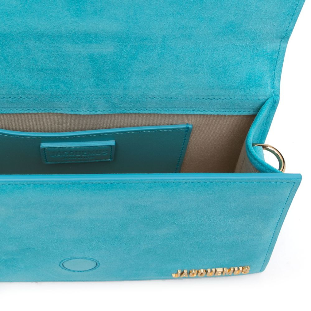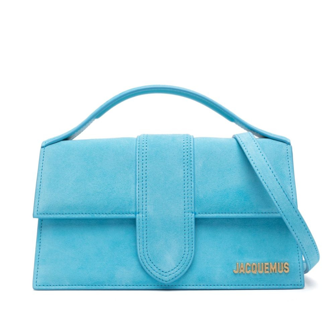 Borsa Jacquemus Le Grand Bambino in suede azzurro 23 cm