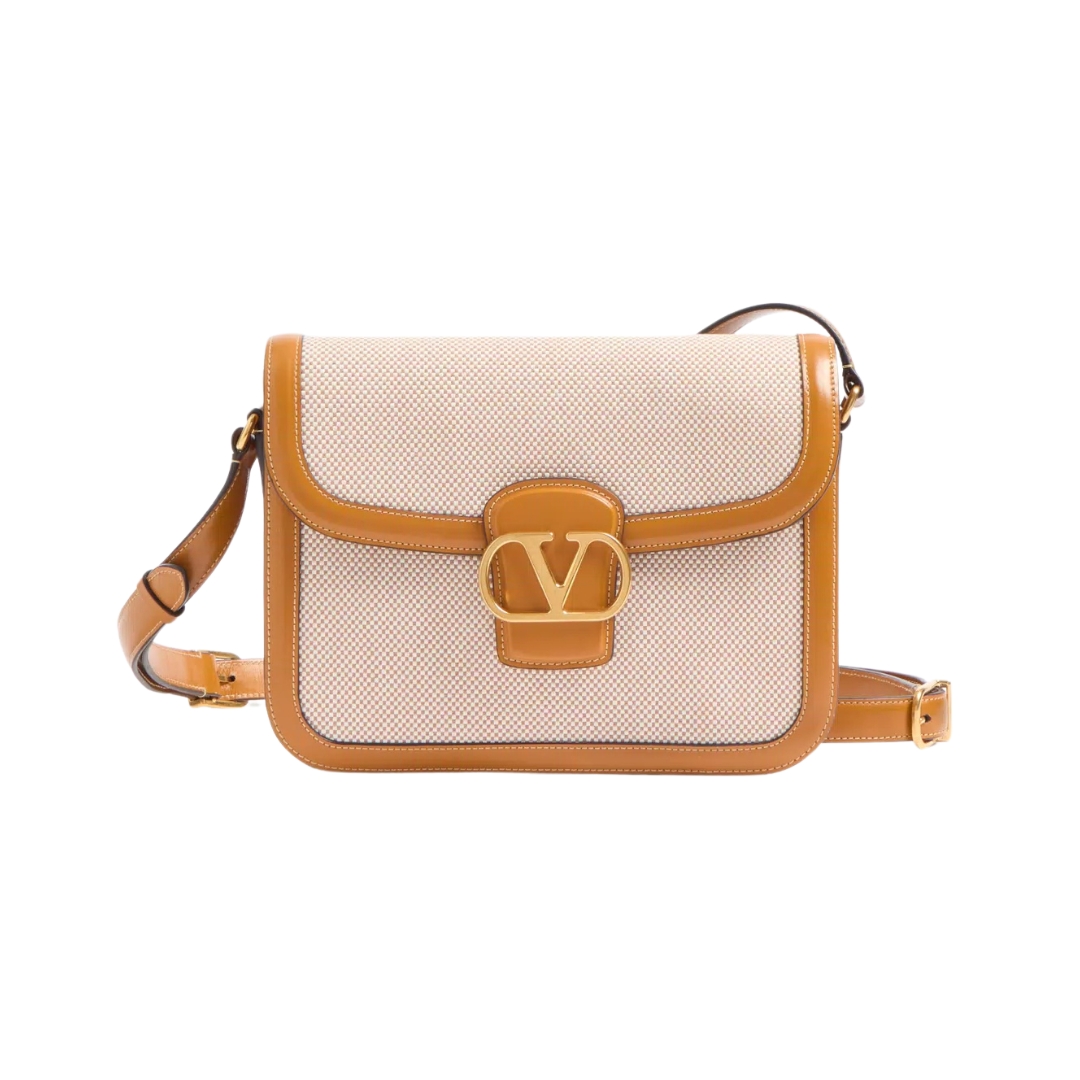 Borsa Valentino 9to5 in canvas e pelle color mandorla 24.5 cm