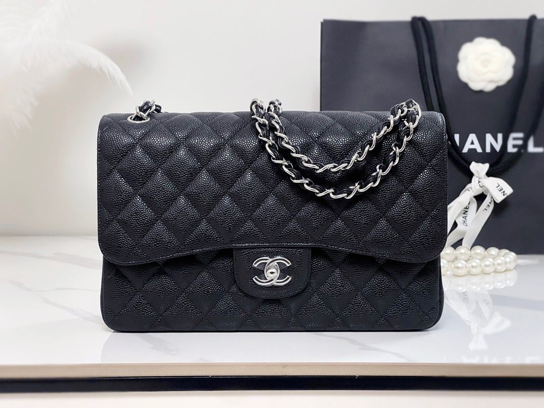Borsa Chanel 11.12 in caviar nero con metalleria argentata 30 cm