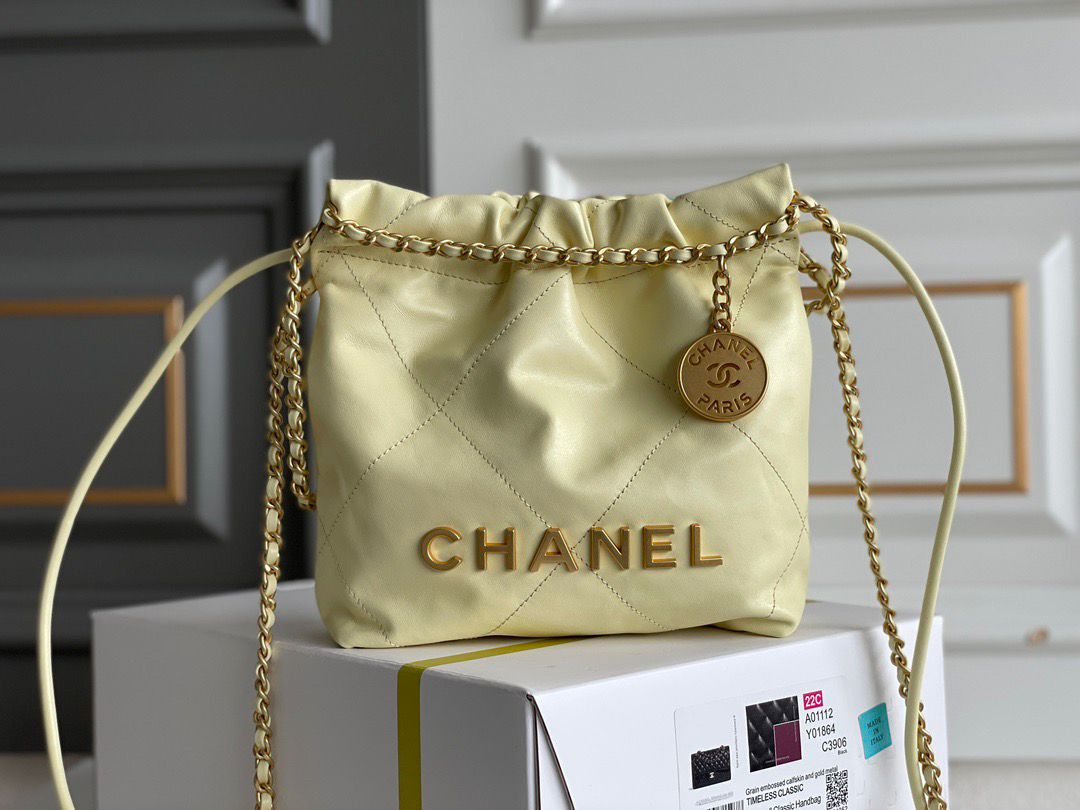 Borsa Chanel 22 mini giallo 19 cm