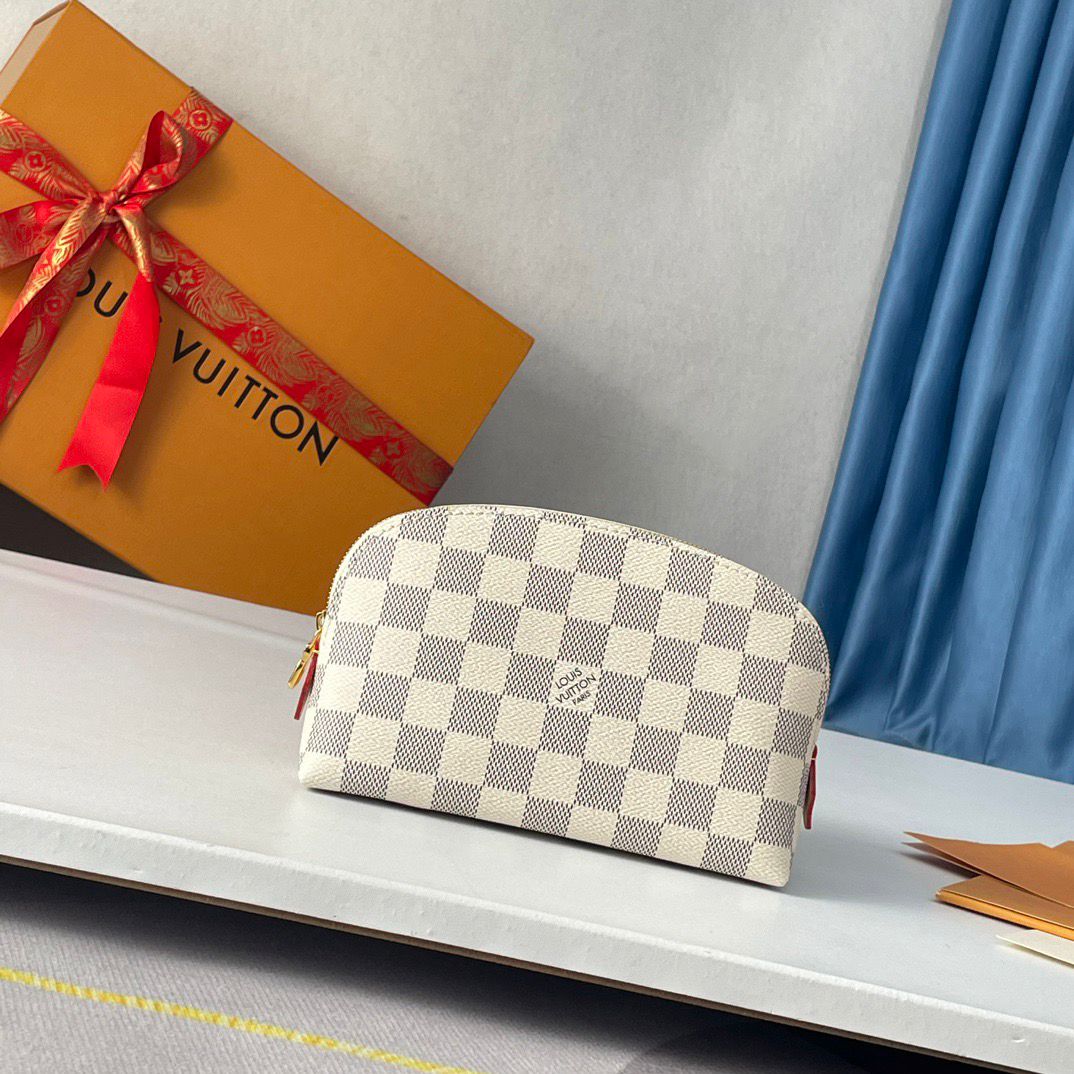Dimensioni:● Larghezza: 19 cm● Altezza: 12 cm● Profondità: 6 cm Dettagli:● Materiale: Tela Damier Azur● Colore: Beige e avorio● Chiusura: