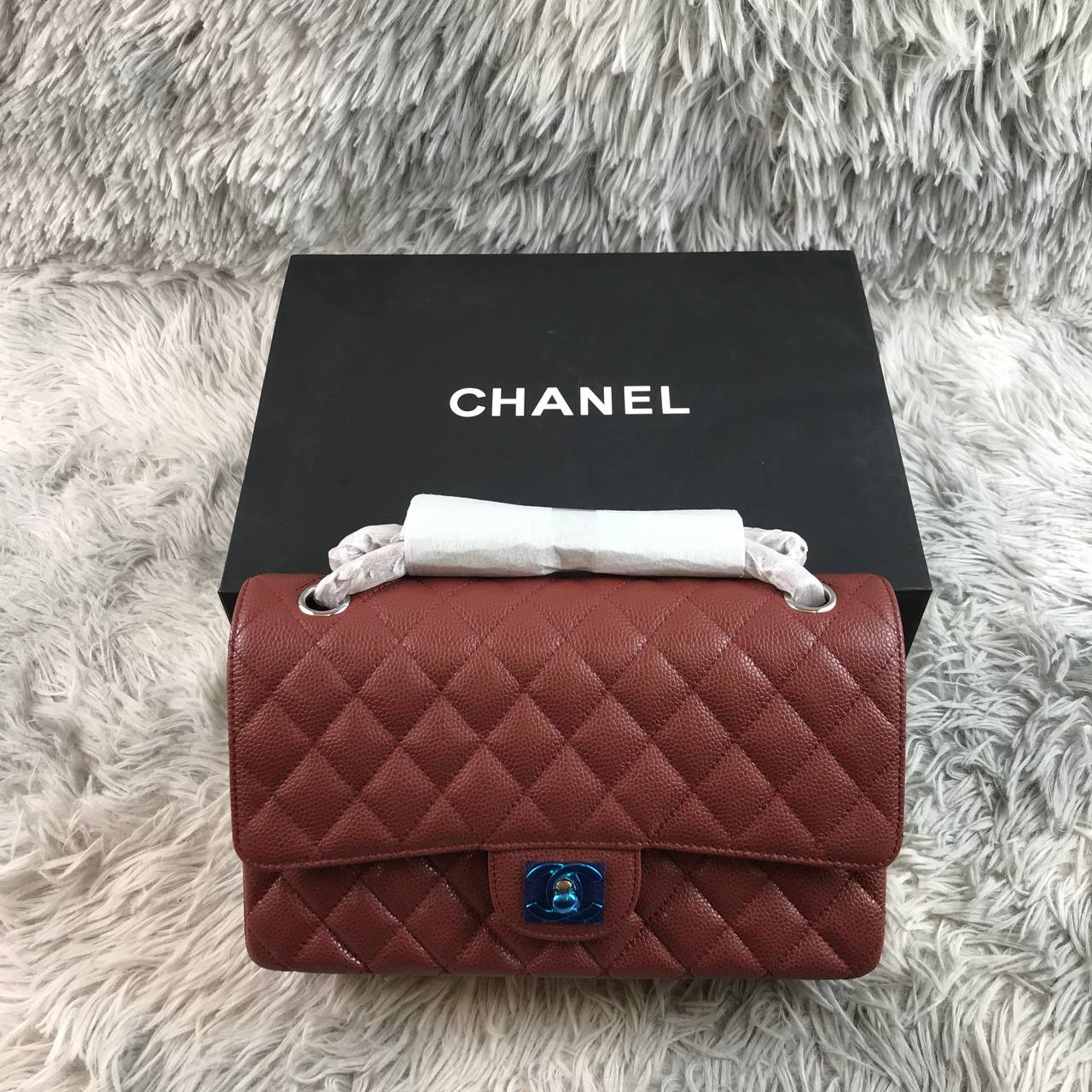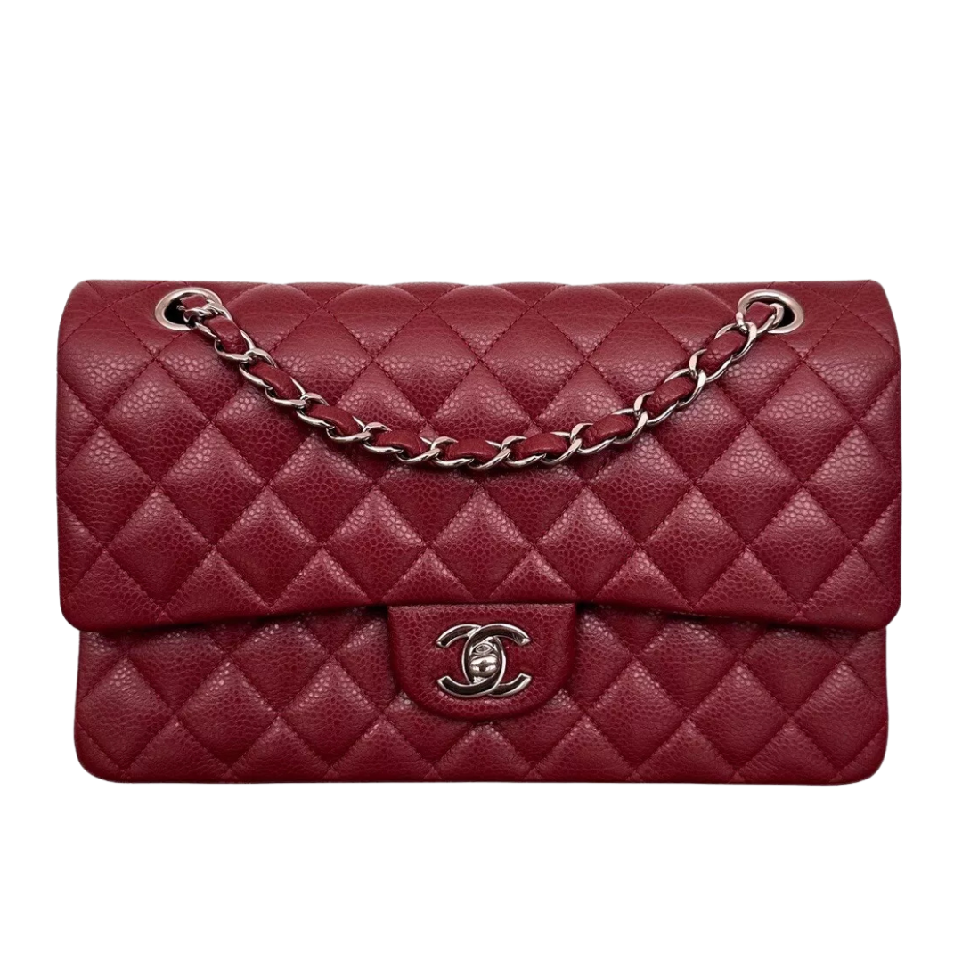 Borsa Chanel 11.12 Double Flap burgundy media in pelle Caviar 25,5 cm