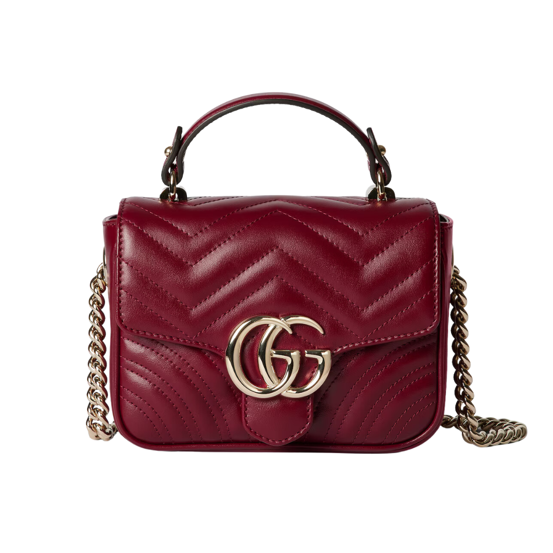 Borsa Gucci GG Marmont Mini Top Handle in pelle rosso scuro 19 cm