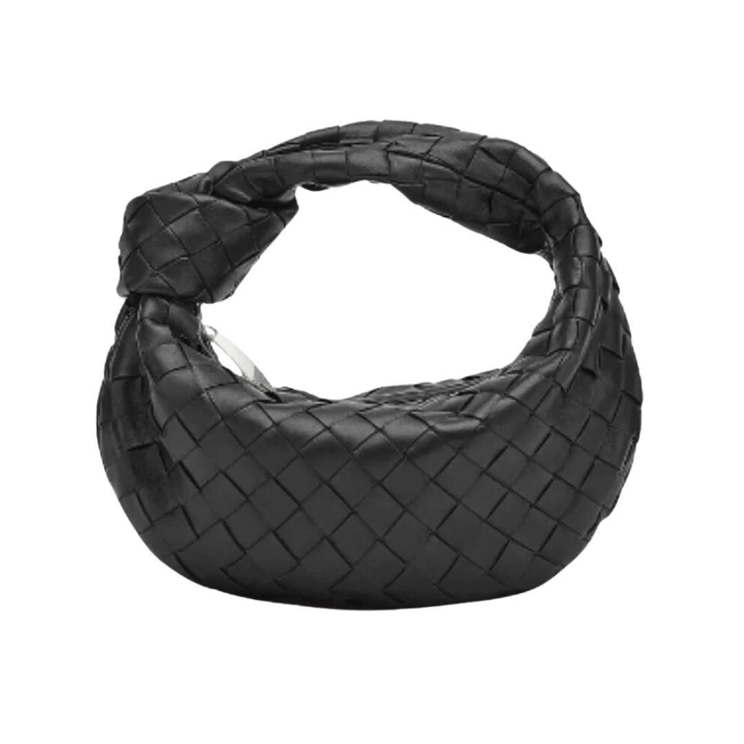 Dimensioni:● Larghezza: 24,6 cm● Altezza: 14 cm● Profondità: 6 cm Dettagli:● Materiale: Pelle intrecciata● Colore: Nero● Chiusura: Zip superiore● Logo: