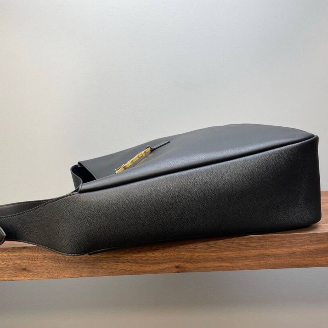 Dimensioni:● Larghezza: 25 cm● Altezza: 19 cm● Profondità: 9 cm Dettagli:● Materiale: Pelle Epsom● Colore: Nero● Chiusura: Patta con cinturino