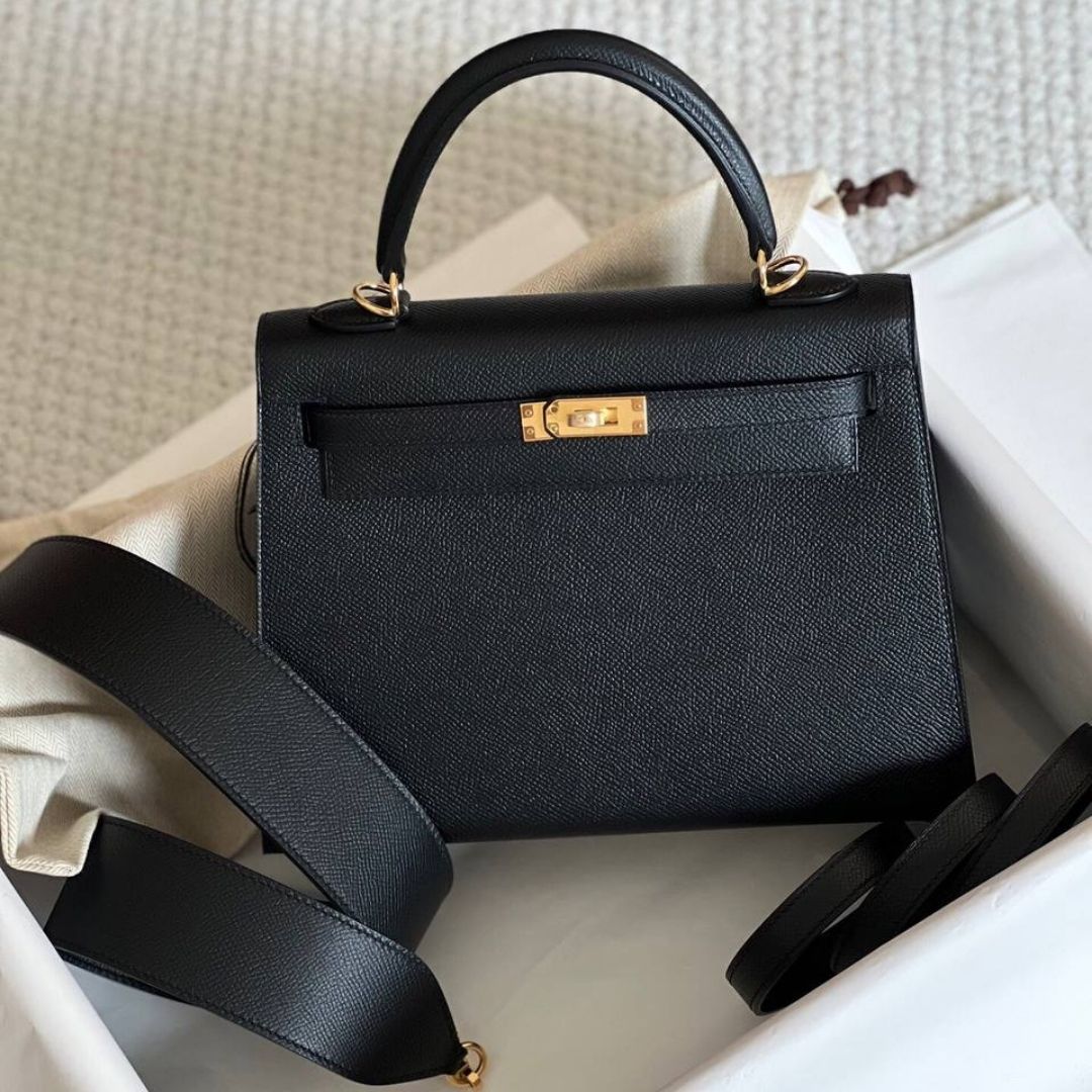 Borsa Hermès Kelly 25 in pelle Epsom nera