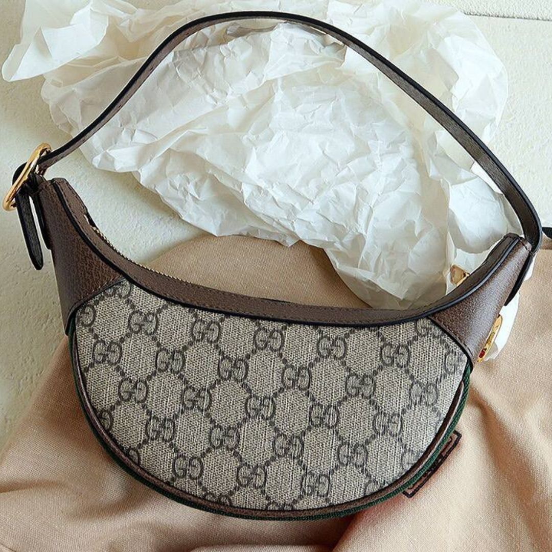 Dimensioni:● Larghezza: 20 cm● Altezza: 15 cm● Profondità: 5 cm Dettagli:● Materiale: Tessuto GG Supreme e pelle● Colore: Beige e