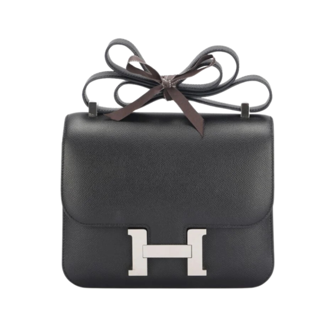 Borsa Hermès Constance 19 in pelle nera con finiture argentate