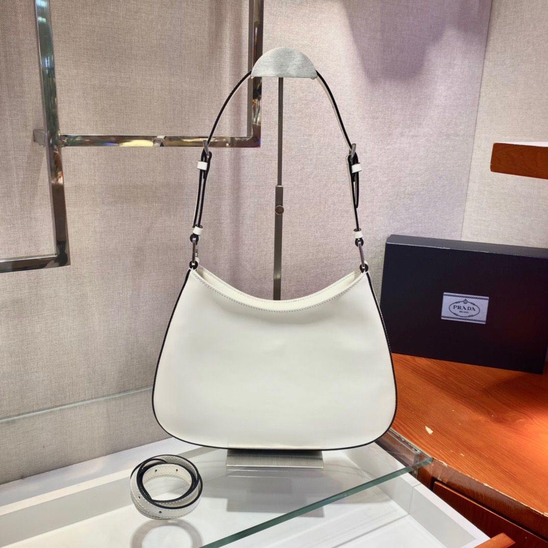 Borsa Prada Cleo in pelle bianca e nera 27 cm