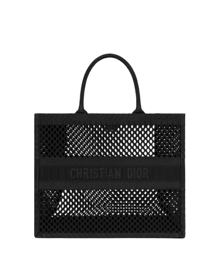 Borsa Dior Book Tote grande in maglia traforata nera 42 cm
