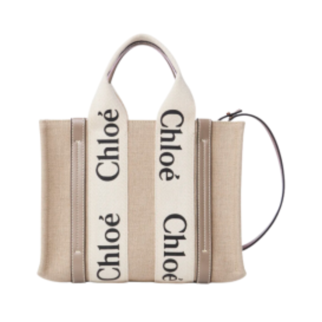 Borsa Chloé Woody Tote in tela muschio grigio 26 cm