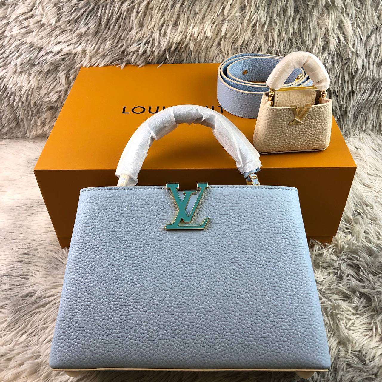 Borsa Louis Vuitton Capucines BB turchese 27 cm