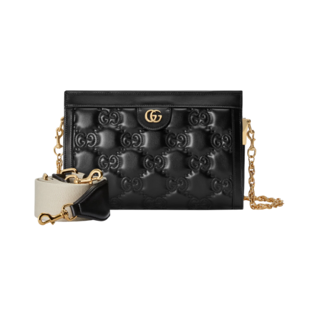 Dimensioni:● Larghezza: 24 cm● Altezza: 14 cm● Profondità: 5,5 cm Dettagli:● Materiale: Pelle matelassé con motivo GG trapuntato● Colore: Nero●