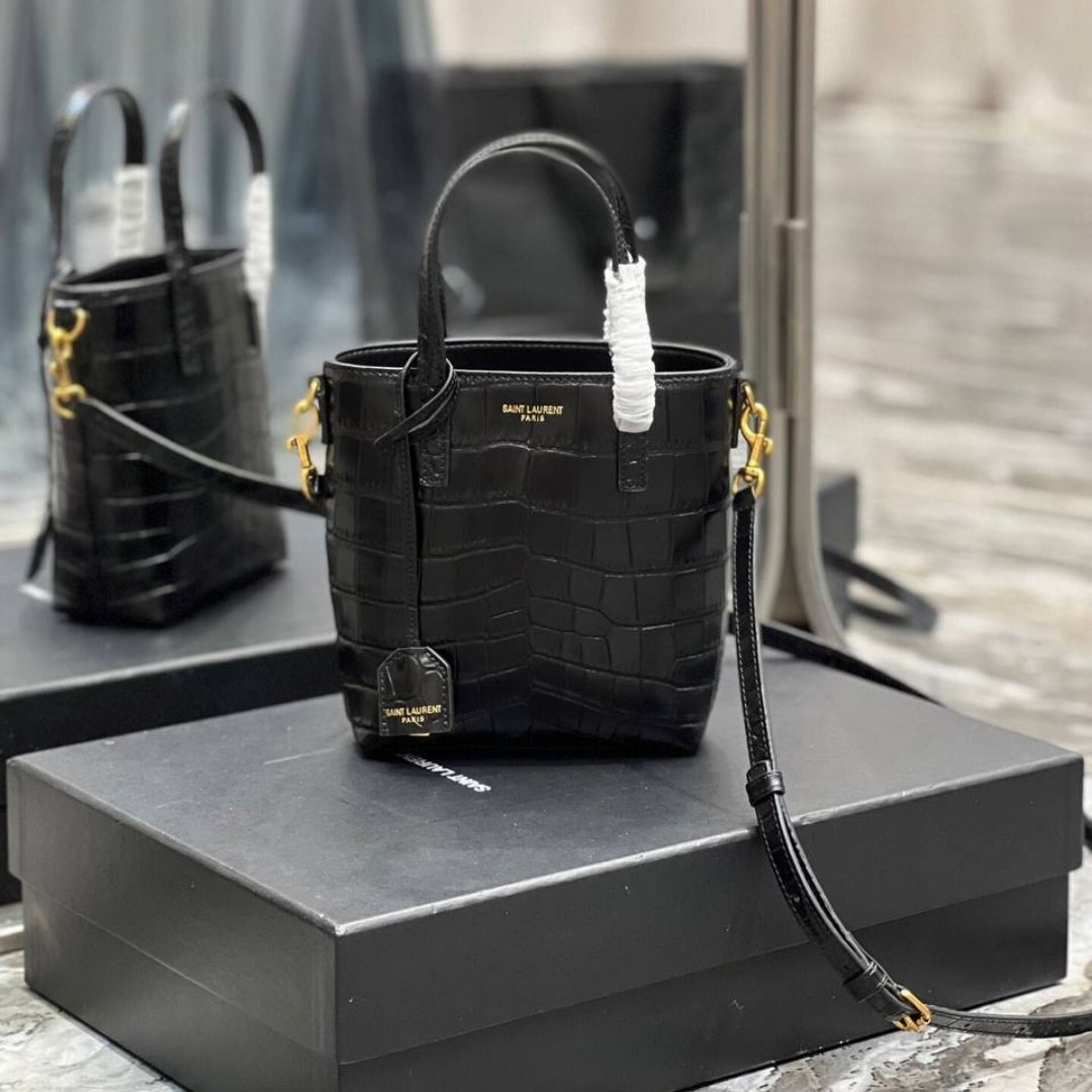 BBorsa Saint Laurent Mini Toy Shopping in pelle stampa coccodrillo nera 18 cm