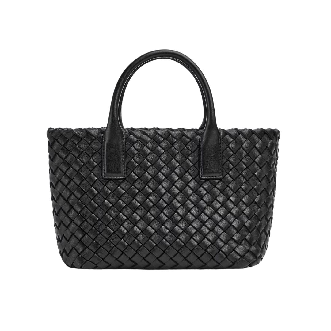 Dimensioni:● Larghezza: 20 cm● Altezza: 17 cm● Profondità: 10 cm Dettagli:● Materiale: Pelle Intrecciato● Colore: Nero● Chiusura: Aperta● Logo: Logo