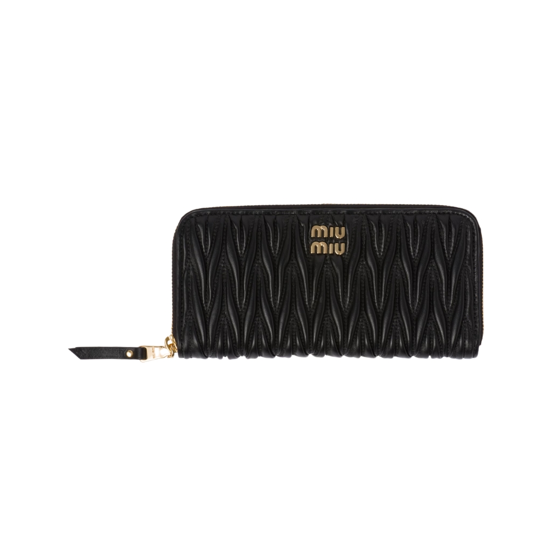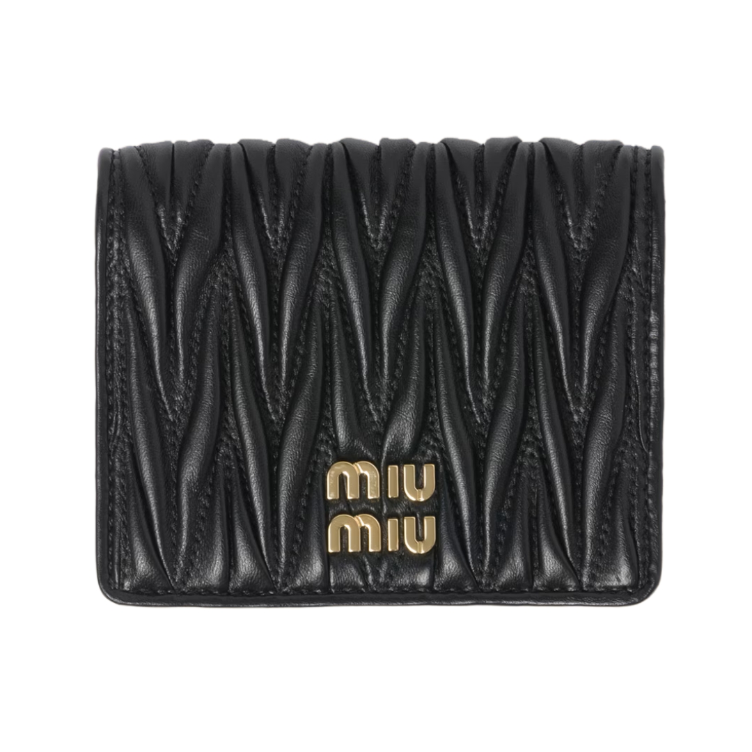 Portafoglio Miu Miu in pelle matelassé nera 7,8 cm